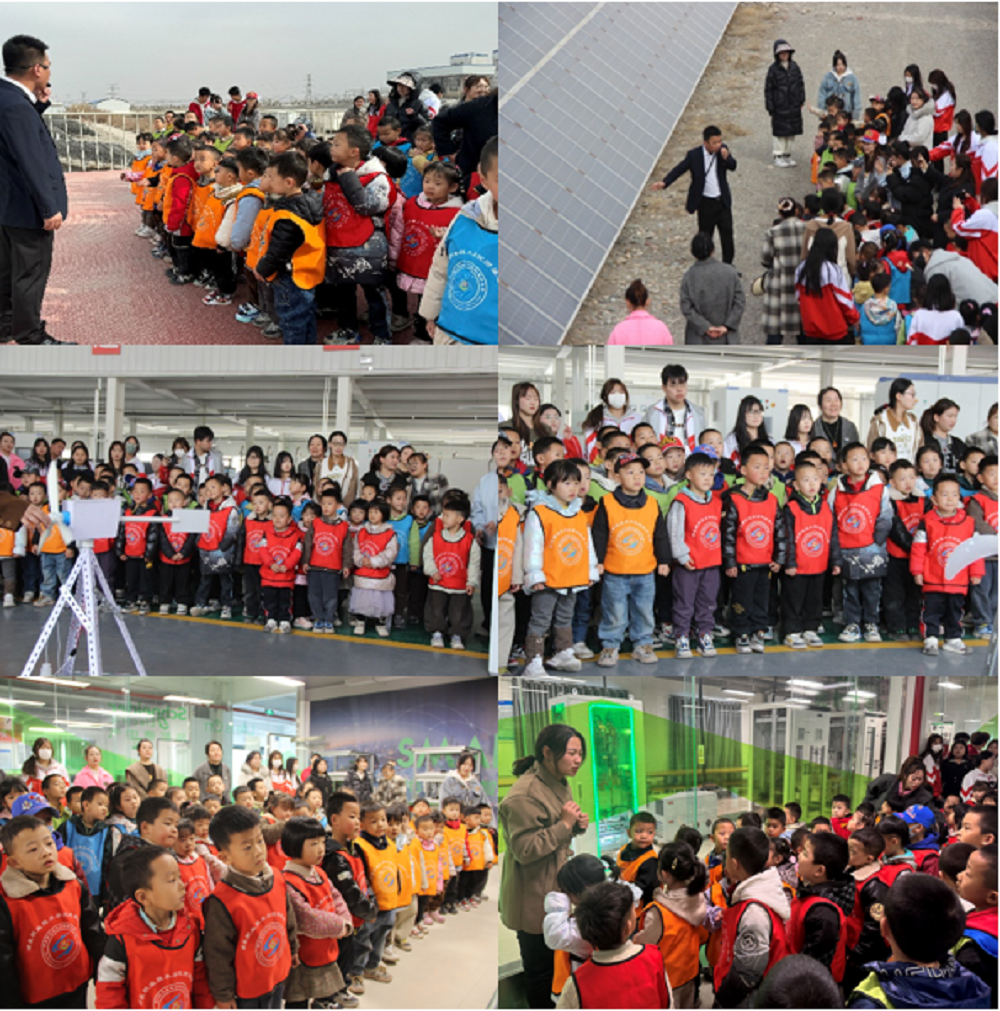 活动中,新能源工程学院相关教师将专业术语转化为童趣语言,对新能源发电设备进行了科普,同时,孩子们还体验了由学院学生设计的新能源科技作品,认识了风力发电机的“大风车”构造、光伏发电的“能量魔法”。这次研学是绿色教育的生动实践,通过让幼儿亲眼见证、亲手体验的方式来感受绿色低碳设备的神奇,使其心中埋下科技与环保的种子。
