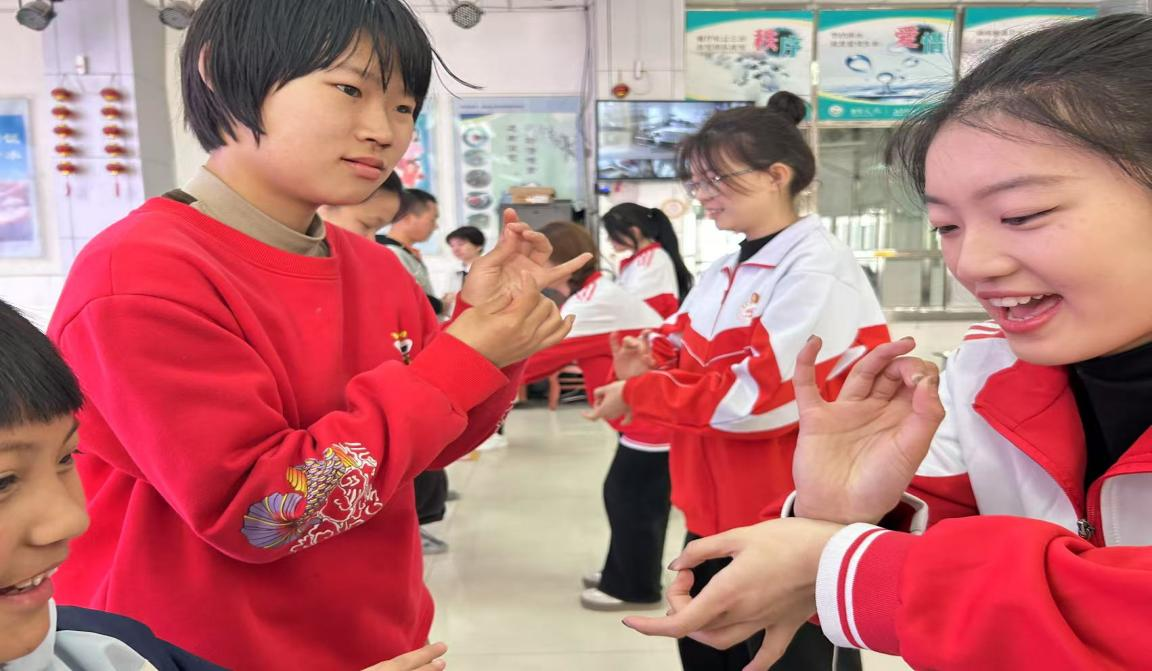 “青春志愿暖特教”环节中,志愿者们为孩子们带来“小动物怎么叫”“图形变变变”手指操教学和“掀起了你的盖头来”“丝路幻影”等优美的舞蹈表演,并领孩子们进行手指操教学互动,用优美的舞姿传递着青春的活力与热情,用爱心与艺术为春日的特教增添了一抹亮色。