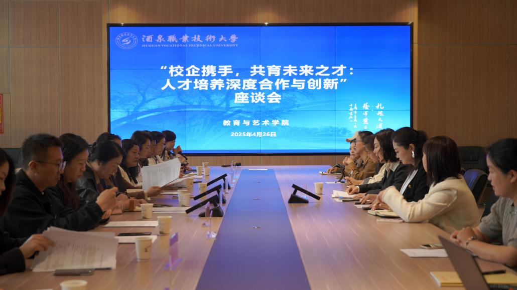 为深化产教融合、创新人才培养模式,4月26日,教育与艺术学院举办“校企携手,共育未来之才”专题座谈会。学院领导、酒泉市12家幼儿园及企业负责人、行业专家与师生代表齐聚一堂,围绕校企协同育人机制、课程改革与实践平台建设等核心议题展开研讨,共探新时代校企合作新路径,会议由教育与艺术学院党支部副书记张冬琴主持。