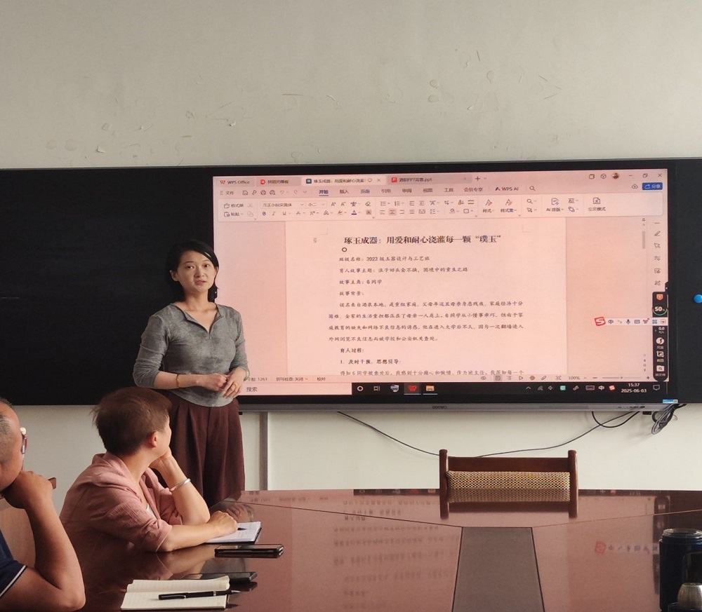 活动第一阶段,常诗雅老师以“琢玉成器,用爱和耐心浇灌每一颗璞玉”为题,通过真实案例分享了班级管理的做法与实效,展示了特色班级建设方案,诠释了"精雕细琢"的育人理念。