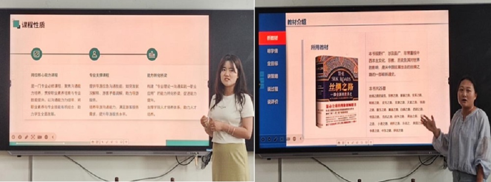 《沟通原理与应用》课程则注重实践性,张雪婷老师设计旅游行业情境,通过学生抽取不同情景沟通卡片掌握沟通技巧,提升学生职业素养。郭蓉老师始终贯穿“以学生为中心”的原则,精细化设计小组合作等环节,使学生深入理解丝绸之路的历史文化与旅游开发价值,真正做到“做中学、学中做”。