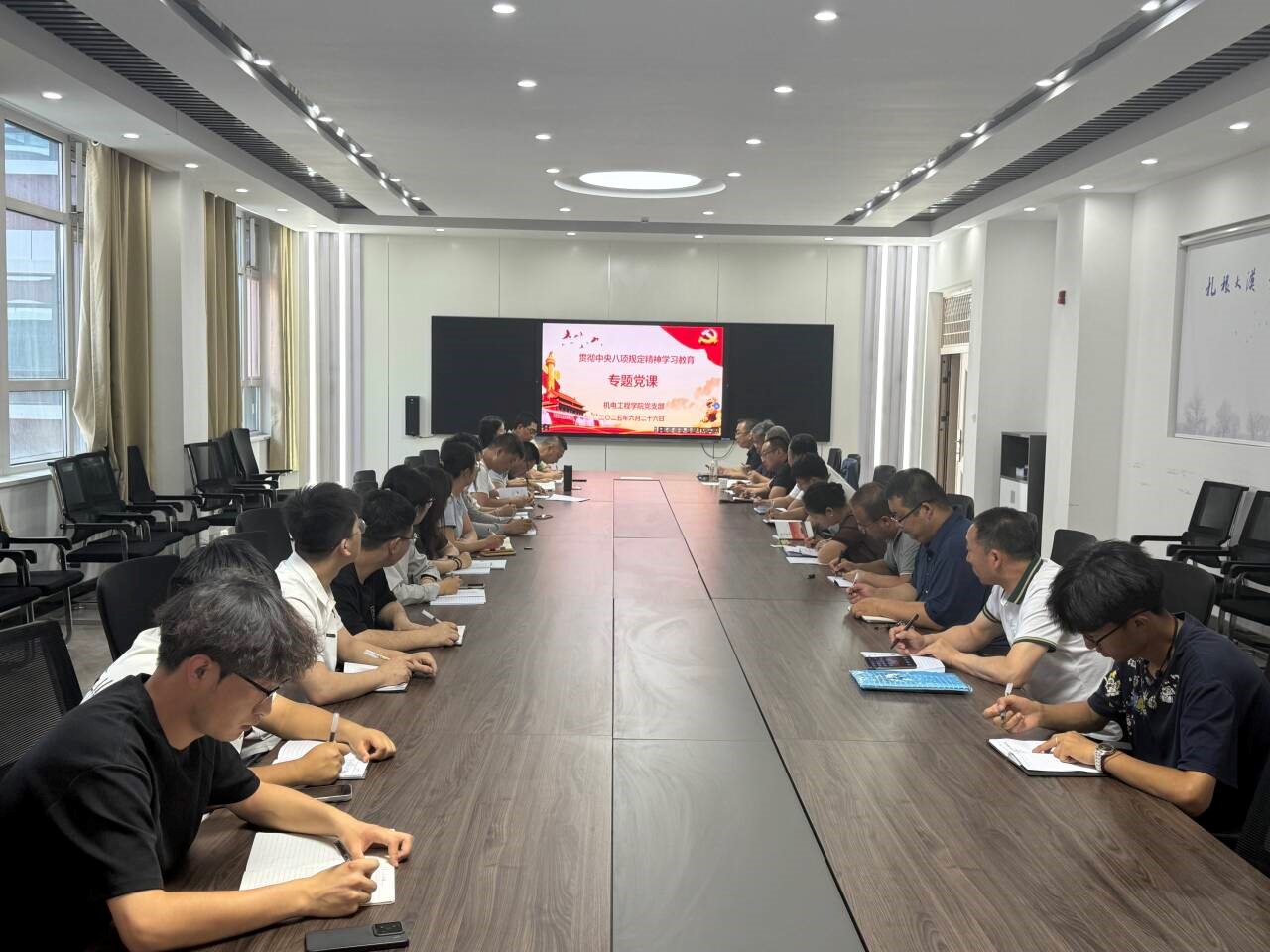 为进一步加强党员教师作风建设,6月26日下午机电工程学院党支部书记、院长裴兴林为全体党员、23级入党积极分子讲深入贯彻中央八项规定精神学习教育专题党课。