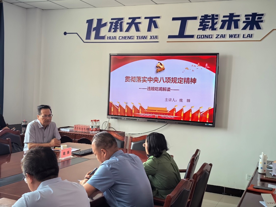 为落实深入贯彻中央八项规定精神学习教育要求,加强党的作风建设,筑牢立德树人的坚强堡垒,7月1日,学校党委委员、纪委书记、省监委派驻学校监察专员魏韡同志以“贯彻落实中央八项规定精神—违规吃喝解读”为题,为化工学院全体教师讲授了专题党课。