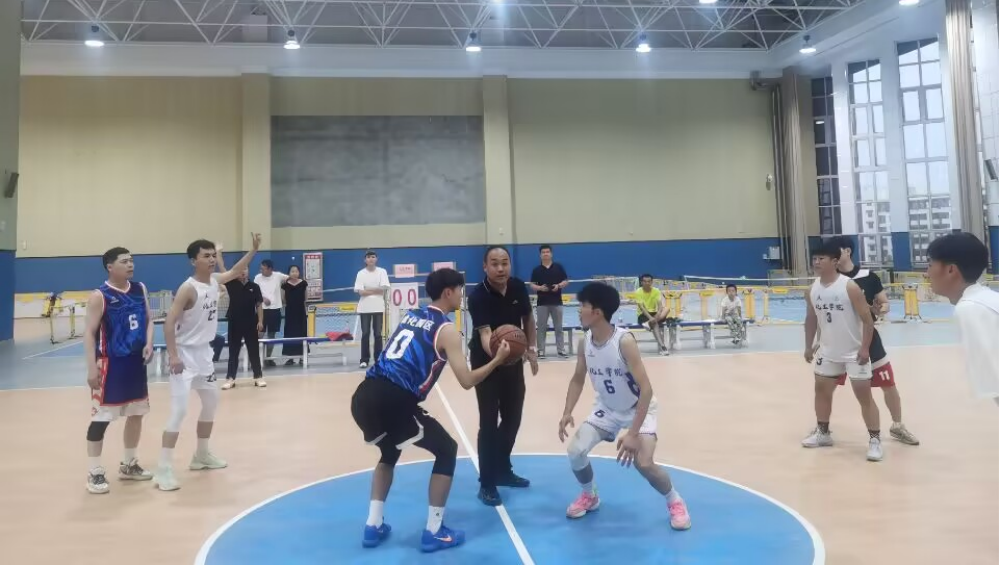 参观结束后,一场激烈而友好的篮球联谊赛在学校篮球馆拉开帷幕。化工学院代表队与玉门东建材化工园区管委会及企业联合代表队展开了精彩对决。赛场上,队员们斗志昂扬、配合默契,精准的投篮、巧妙的传球、严密的防守,不时引来场边观众的阵阵喝彩。这场篮球联谊赛不仅丰富了大家的文体生活,更搭建了一个轻松愉快的交流平台,让校政企三方人员在挥洒汗水的同时,增进了友谊、拉近了距离。