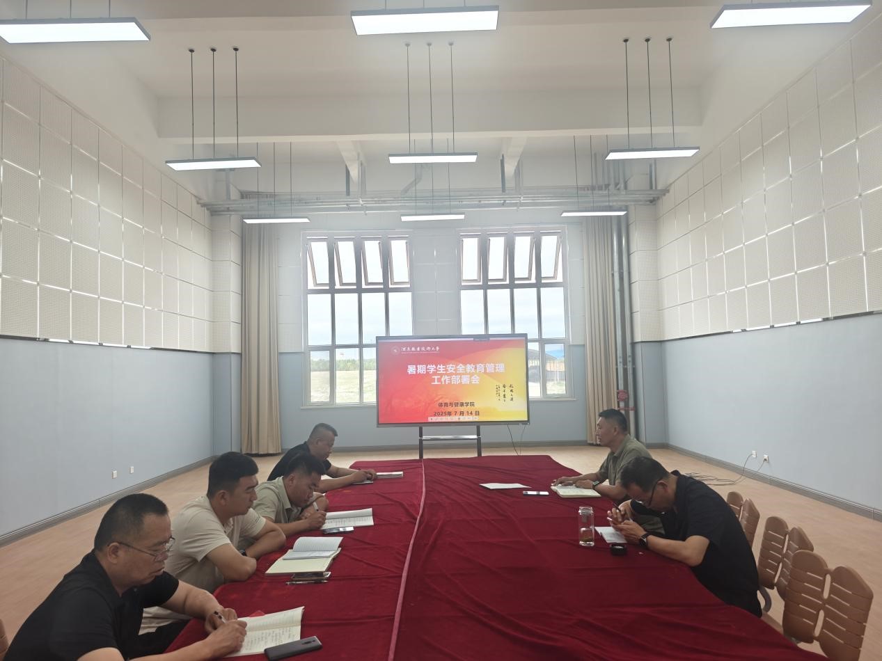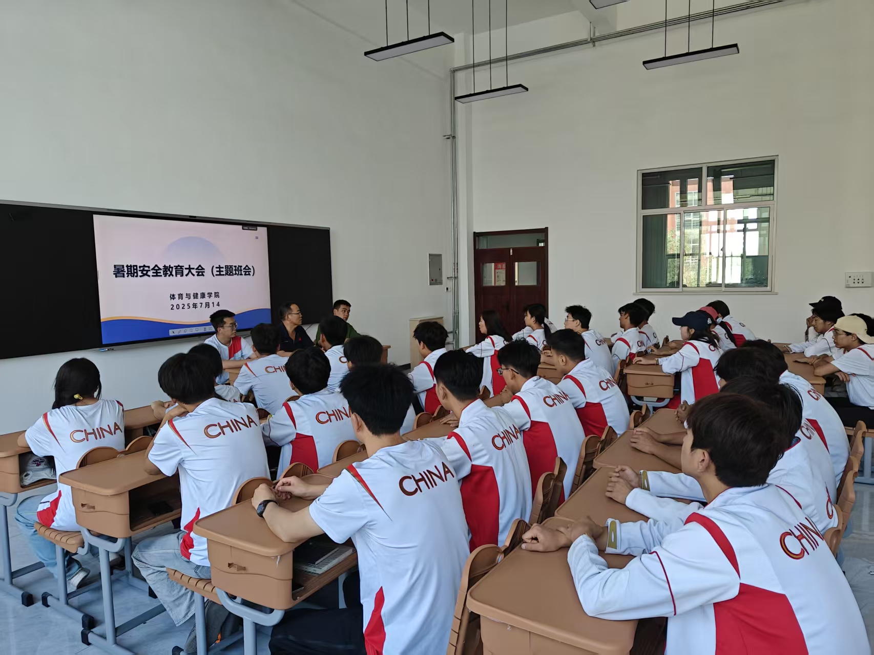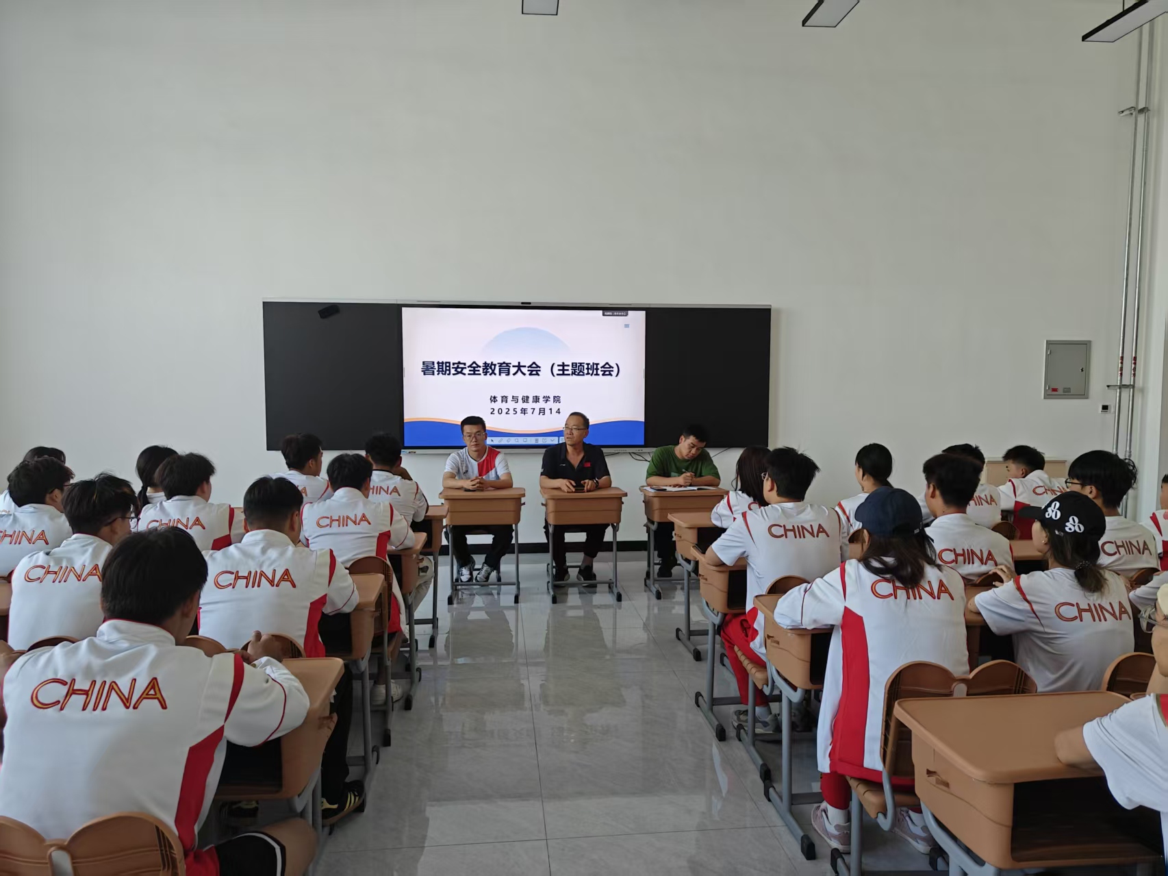 为进一步增强学生安全意识,确保暑期学习、训练与生活的安全有序,7月14日,体育与健康学院室召开“暑假学生安全教育管理工作部署会”、“暑期安全教育主题班会”。学院党支部书记周小刚、党支部副书记马鑫、团委书记景龙德、班主任及全体在校学生参加会议。