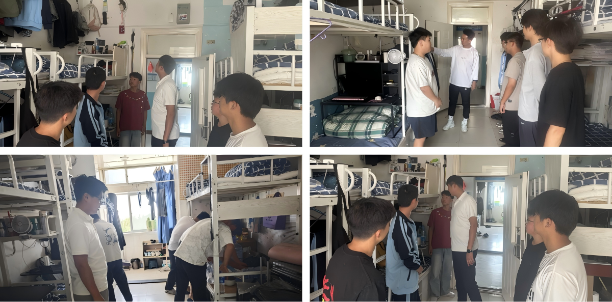 本次活动以“筑牢安全防线,守护平安校园”为主题,各班级组织开展安全教育主题班会,班主任围绕消防安全、交通安全、食品安全等十大重点领域,结合典型案例进行讲解和互动;24级学生集中观看“开学第一课”专题节目,在感人至深的爱国故事中强化家国情怀与安全意识;学生管理办公室老师与24级班主任深入学生寝室开展安全隐患排查,现场指导学生整改安全隐患。在活动中,同学们通过“理论+实践”“线上+线下”相结合的方式,将安全知识内化于心、外化于行。