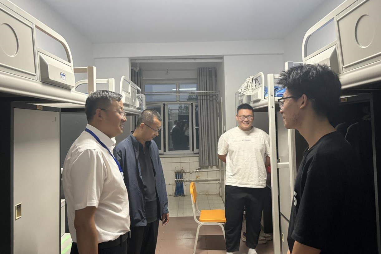 为及时了解新生报到与适应情况,9 月 7 日晚上,旅游与烹饪学院党支部书记张来顺,党支部副书记、院长刘兴龙,副院长马东邦,副院长杨蕊肇带领2025级班主任走进新生宿舍,把学校的牵挂与期望亲手送进每一间“新家”。