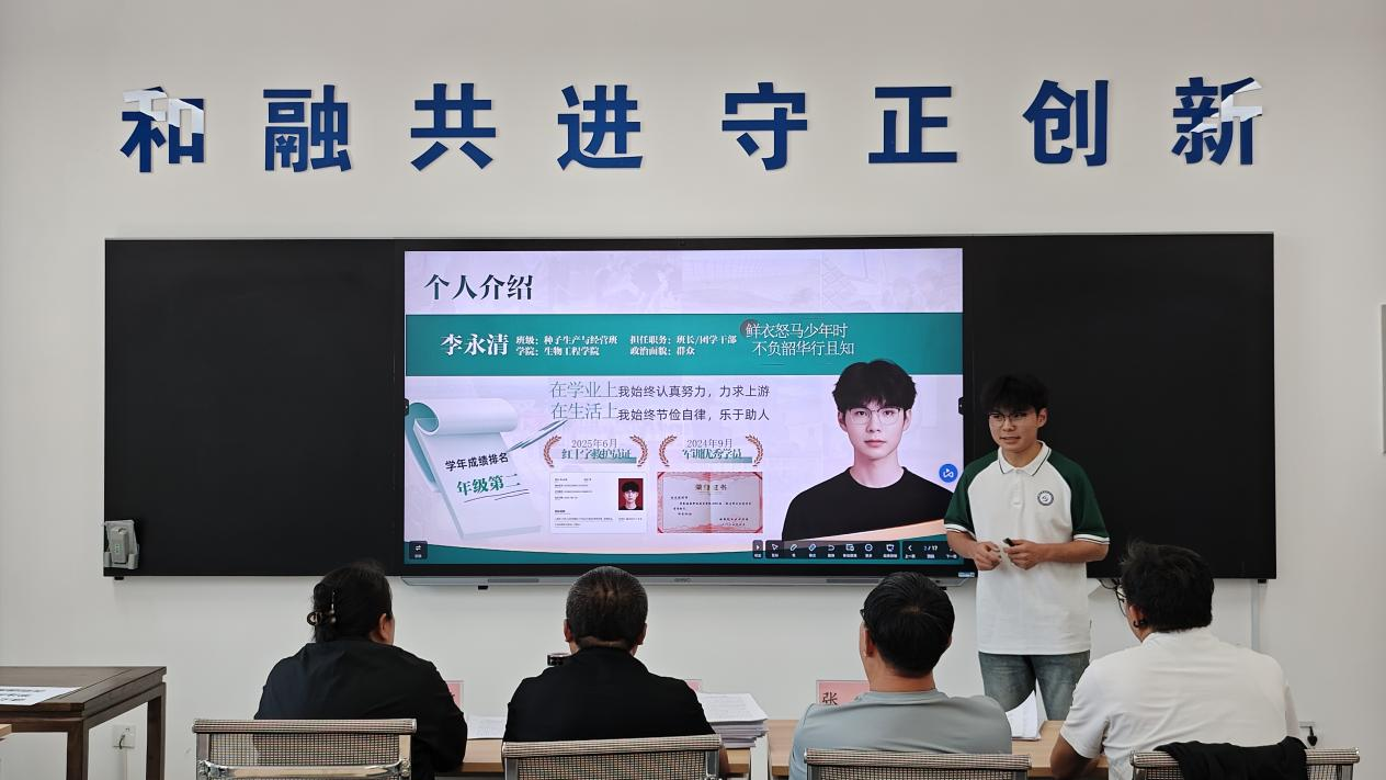 为进一步推进优良学风建设,树立刻苦努力、奋发向上的优秀学生典型,综合考察学生思想政治、学习成绩、社会活动等各方面标准,生物工程学院于9月16日中午在弘毅楼A座306教室召开2025年国家奖学金、国家励志奖学金评审答辩会,张涛院长及评审小组成员担任本次国家奖学金、国家励志奖学金答辩评委。
