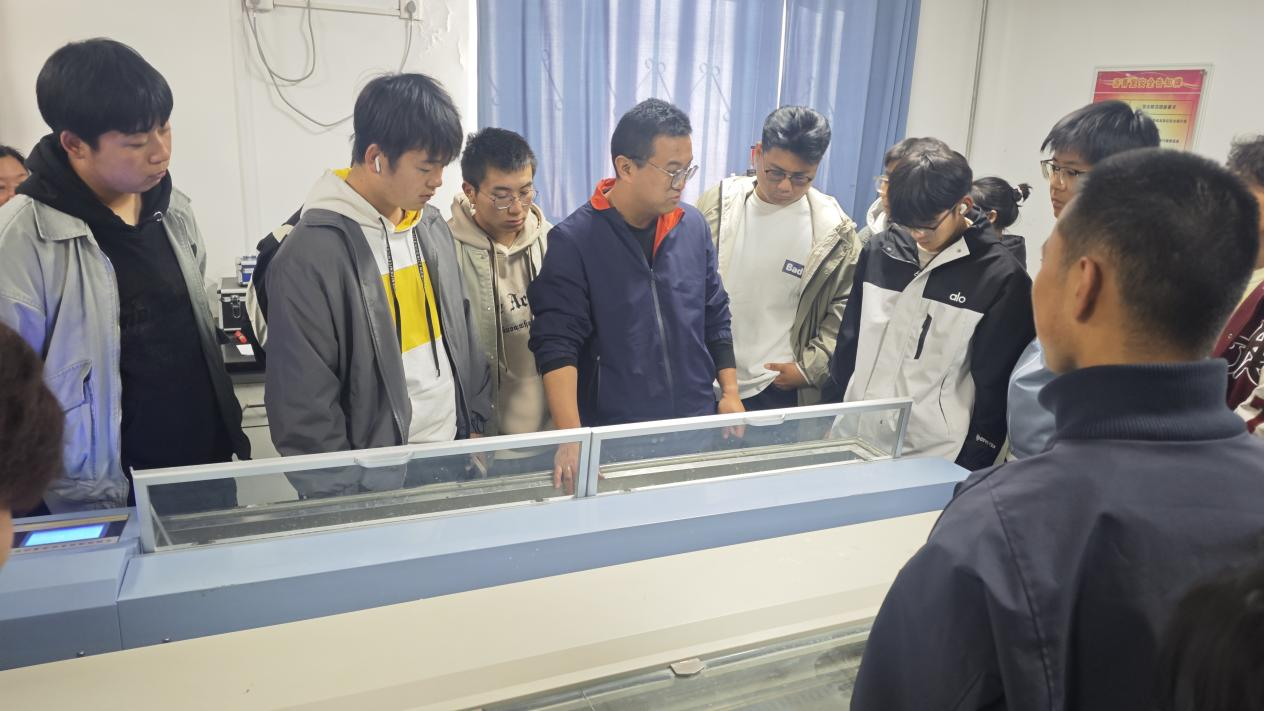 在甘肃公路博物馆,同学们通过室内展区丰富的实物模型、历史文献与数字化互动装置,系统了解了甘肃地区从古丝绸之路交通驿道到现代智慧公路的演进历程,重点学习了道路材料演变、桥梁结构类型与施工工艺发展等专业知识。随后在户外展区,各类施工机械的实体展示生动呈现了筑路设备从机械化到智能化的发展轨迹,使同学们对现代公路施工的技术装备有了直观认识。在酒泉公路事业发展中心试验检测室,精密的路基检测仪器、材料性能测试设备及规范化的操作流程,让同学们深刻体会到工程质量控制在公路建设中的关键作用,进一步理解了“标准引领、数据支撑”的行业质量管理理念。