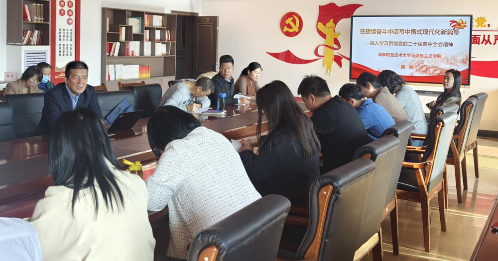 为深入学习贯彻习近平新时代中国特色社会主义思想,扎实推进2025年党员党性教育工作,全面落实党的二十届四中全会精神,2025年11月3日,马克思主义学院党支部书记聂峰同志以“在接续奋斗中谱写中国式现代化新篇章——深入贯彻党的二十届四中全会精神”为题,讲授专题党课,学院全体党员、教师参加学习。