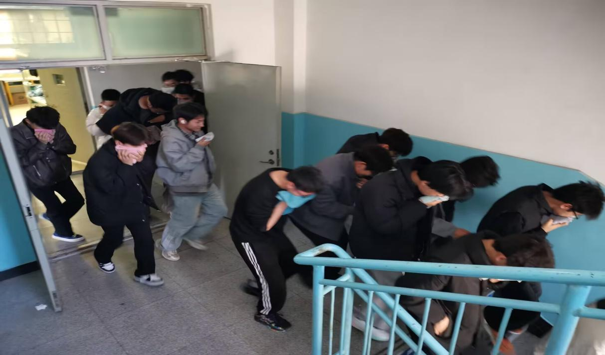 活动以“教育+演练+实训”三位一体模式系统推进。在教育层面,学院于11月9日晚组织全体班级召开“安全用火用电”主题班会,集中观看聚焦高校实训室、学生宿舍等真实场景的消防安全警示教育片,通过典型案例强化学生的火灾防范意识。在实战演练方面,11月19日中午,学院在至诚轩公寓开展全员消防应急疏散演练,通过周密预案制定、明确疏散路线和规范引导,确保全体学生迅速有序撤离至安全区域,有效提升了师生的应急反应和协同疏散能力。当日下午,学院联合学工部开展消防器材实操实训,组织各班学生代表系统学习灭火器构造原理与“提、拔、握、压”操作要领,并通过轮番实战灭火演练,确保学生真正掌握初起火灾扑救技能。