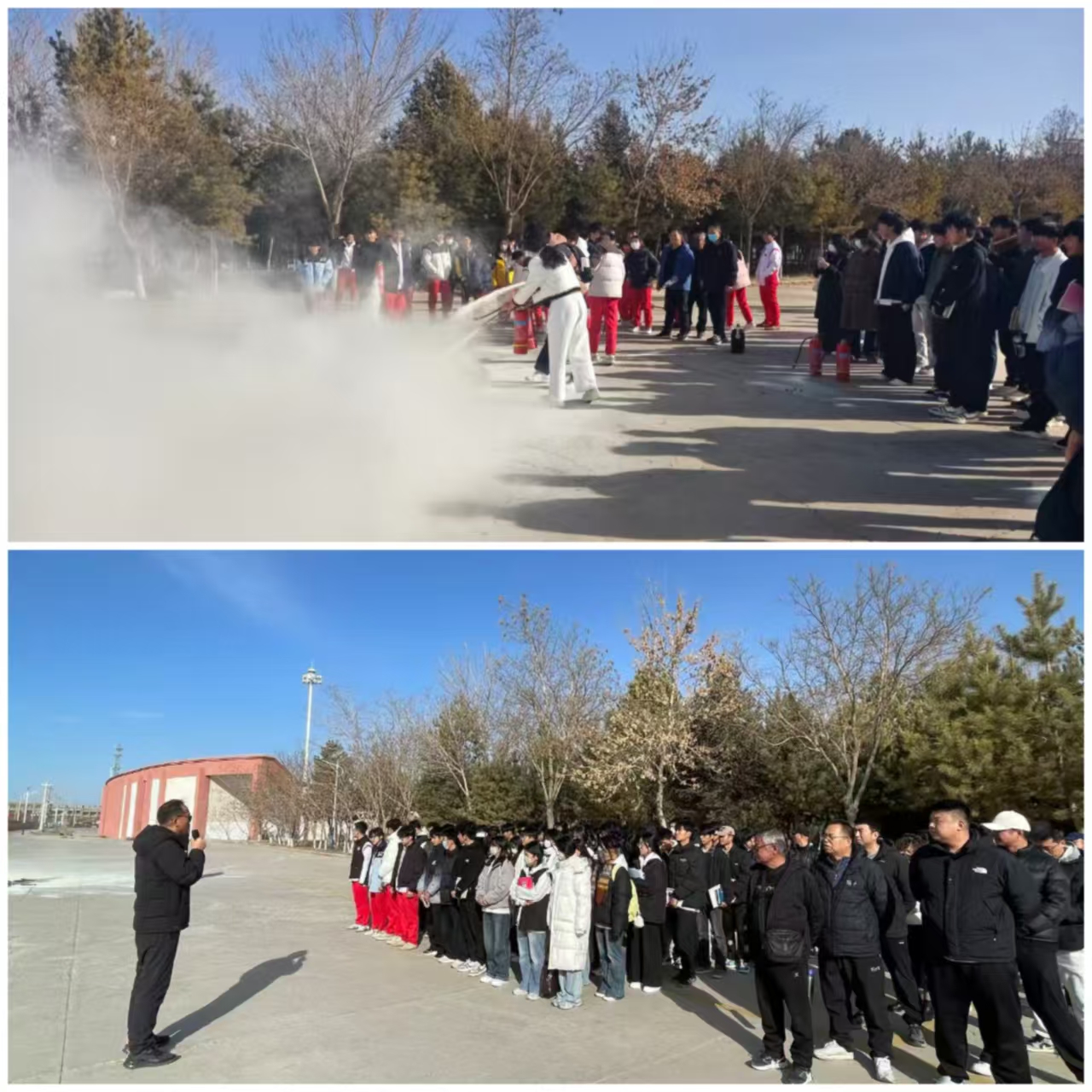 为切实增强全院师生的消防安全意识,提升应对突发火险的应急自救能力,筑牢校园安全防线,11月26日上午,体育与健康学院在天健馆西侧进行消防演练。
