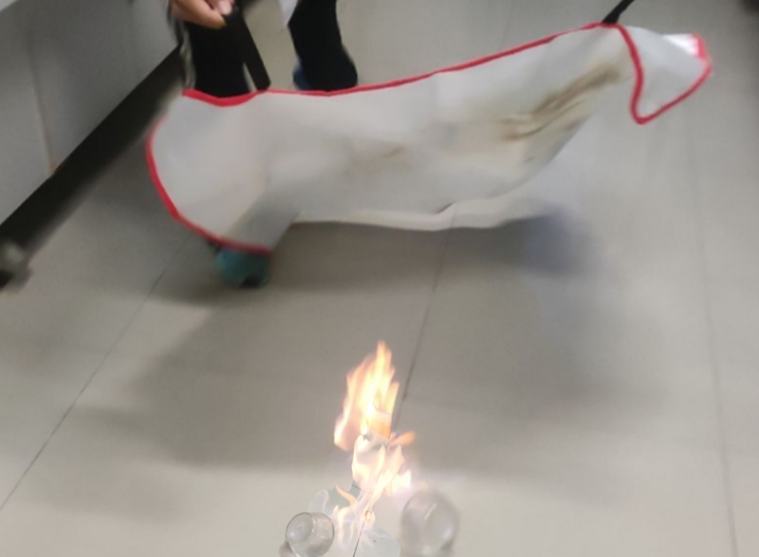 演练模拟实验室因酒精灯打翻引发初期火情。警报响起后,学院应急小组立即启动预案,组织师生沿预定路线快速、低姿态疏散。全体人员在两分钟内有序撤离至安全集结区,过程紧张高效。随后,安全负责人现场讲解并演示了灭火毯、干粉灭火器的正确使用方法,部分学生进行了实操体验。