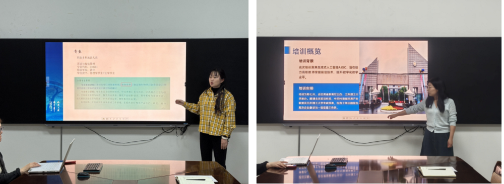 随后,近期外出参加高水平培训及学术会议的六位教师围绕各自参加的培训项目,结合学院专业特色与教学实际,进行了凝练而充实的分享。汇报内容涵盖新形态教材编写、人工智能赋能教育、数字创意人才培养以及骨干教师专业发展等多个领域。