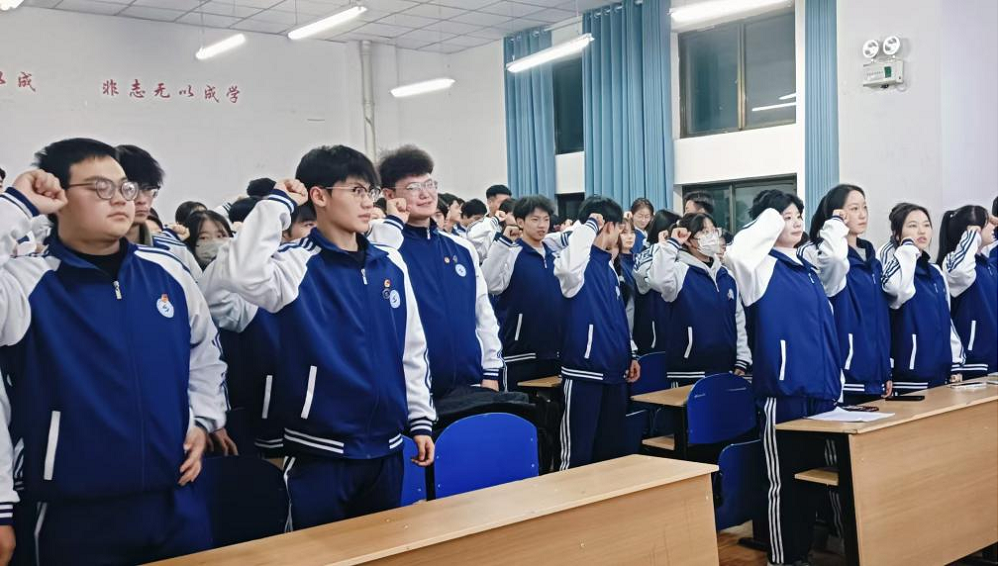“我宣誓:忠于中华人民共和国宪法,维护宪法权威,履行法定职责……”在学院团委的精心组织下,庄严的宪法宣誓仪式在教室隆重举行。全体学生身着整洁系服,身姿挺拔、右拳高举,以铿锵有力的誓言表达对宪法的崇高敬畏与忠诚坚守。铮铮誓言回荡校园,既是青年学子践行法治精神的郑重承诺,更是传承宪法精神、护航青春成长的坚定决心。