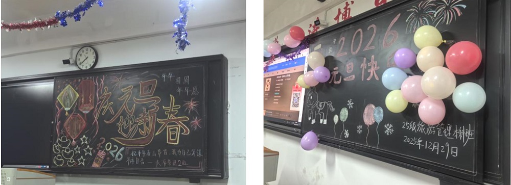 为迎接2026年元旦佳节,营造欢乐祥和、文明有序的校园文化氛围,12月29日晚,旅游与烹饪学院以班级为单位,在行知楼晚自习教室及酒店烹饪实训中心同步举办“辞旧迎新贺元旦,游园喜乐启新篇”主题游园会,师生齐聚共庆佳节,开启新年序章。