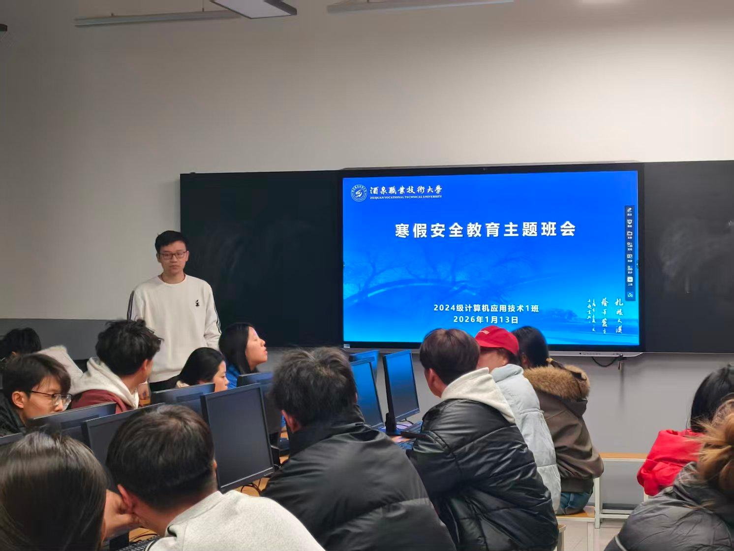 1月13日至16日,电子与信息工程学院各班级组织召开寒假安全教育主题班会。班会结合近期典型安全案例,覆盖国家安全、网络安全、交通安全、防火防灾、冰雪运动安全、食品安全、社交安全、防范性侵害等内容,引导学生树立“安全第一”的思想。实习班级通过线上联动的形式开展。