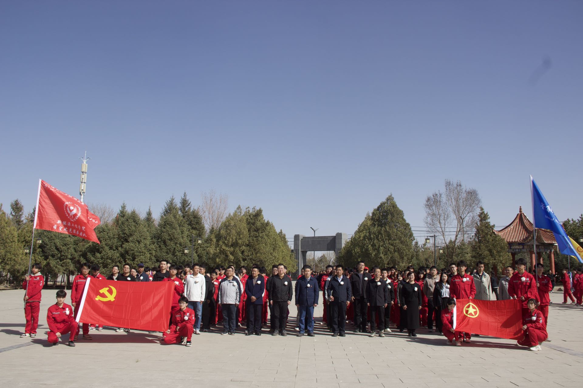 为深切缅怀革命先烈,传承红色基因,厚植爱国情怀,2026年3月31日,新能源工程学院党支部组织教师及学生代表共计100余人,前往酒泉烈士陵园,庄严举行“先锋熔志·红绿相映”清明砺行扫墓活动。党支部领导班子成员参加活动。