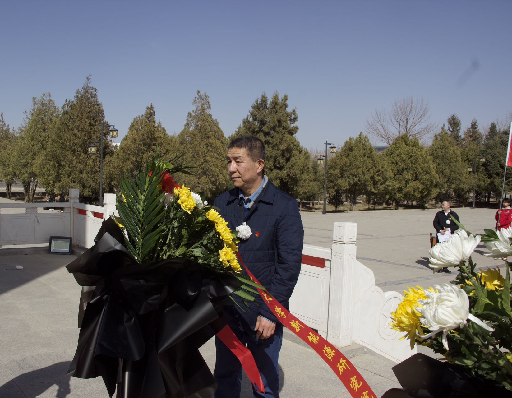 活动在激昂的中华人民共和国国歌声中正式开始,全体师生肃立,齐声高唱国歌,表达对祖国的无限热爱与对革命先烈的崇高敬意。随后,伴随着深情的《献花曲》,党支部书记许新兵、统战委员许世鹏代表全体师生上前整理花篮缎带,向革命先烈致以最崇高的敬意。