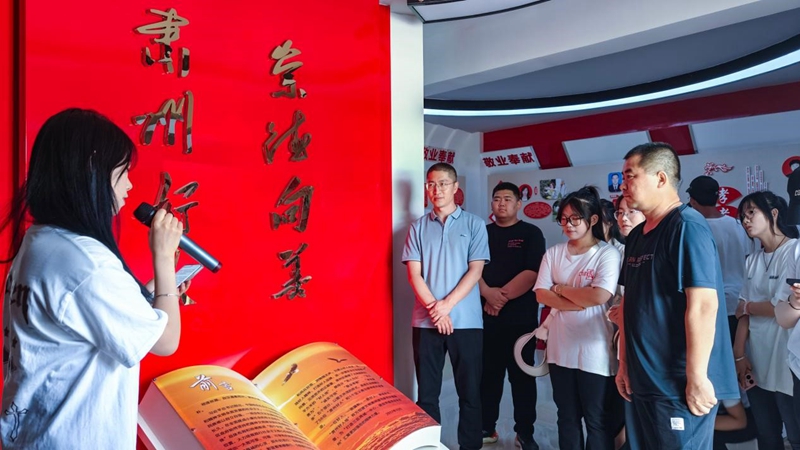 在酒泉起义纪念馆团队成员们聚精会神地聆听讲解,不时驻足凝视,深刻感受着革命先辈们为了国家独立、民族解放和人民幸福,英勇无畏、舍生忘死的崇高精神。在参观过程中,同学们深受触动,有的认真做着笔记,有的低声交流着自己的感悟。