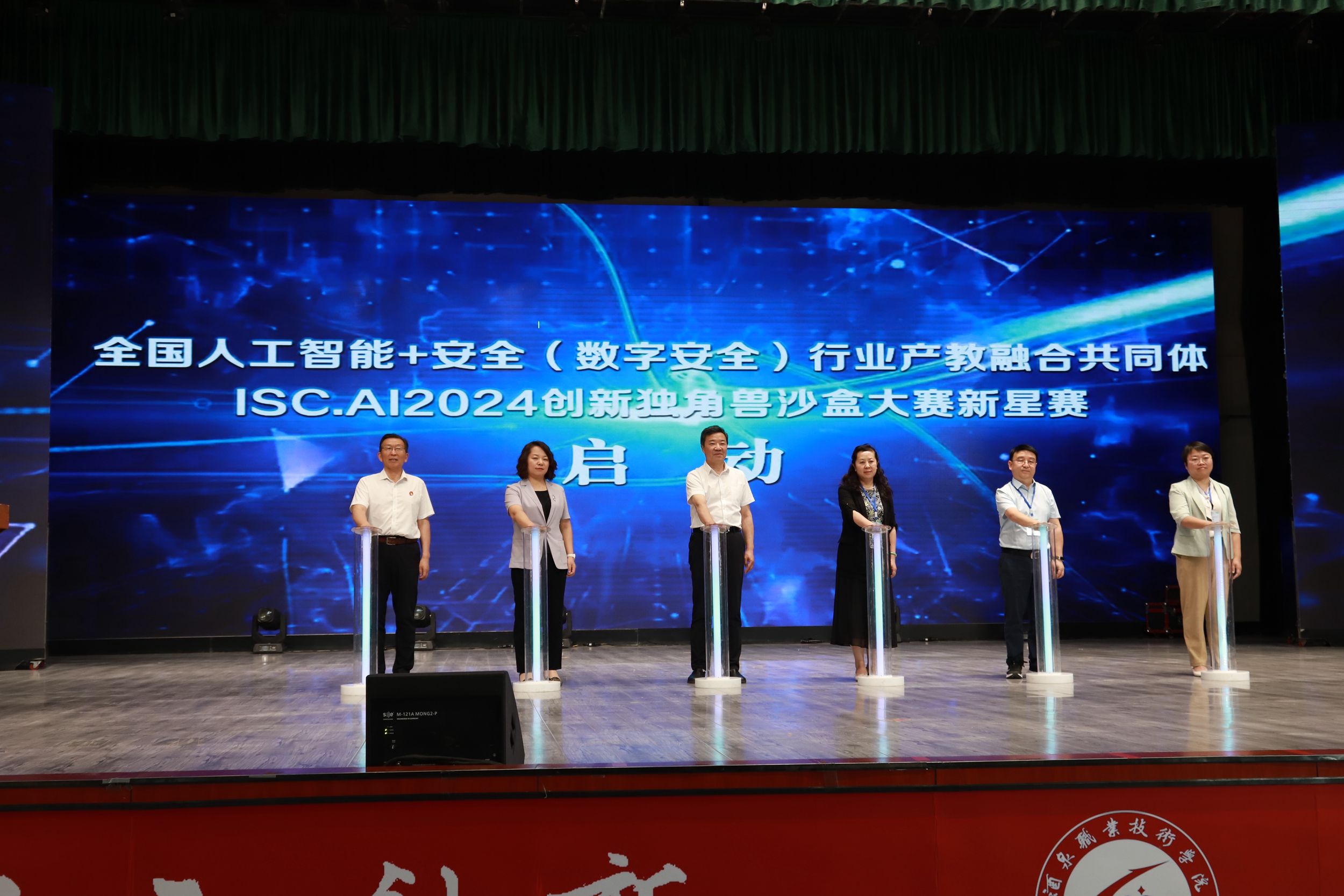 与会嘉宾共同启动“全国人工智能+安全(数字安全)行业产教融合共同体ISC.AI2024创新独角兽沙盒大赛新星赛”。
