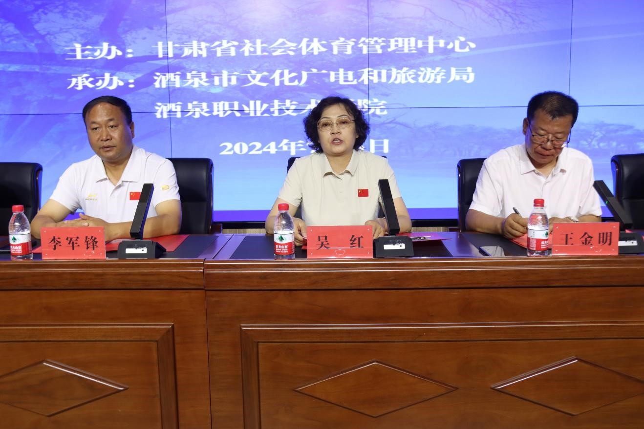 甘肃省社会体育管理中心党支部书记、主任吴红,甘肃省社会体育管理中心社会体育指导员部部长任志霞,酒泉市文体广电和旅游局党组成员、三级调研员李军锋,酒泉职业技术学院党委委员、副校长王金明,教练员讲师孟明,裁判员讲师张新光以及来自全省各地的80余名裁判员和运动员参加了开班典礼。体育与健康学院党支部书记、院长周小刚主持。