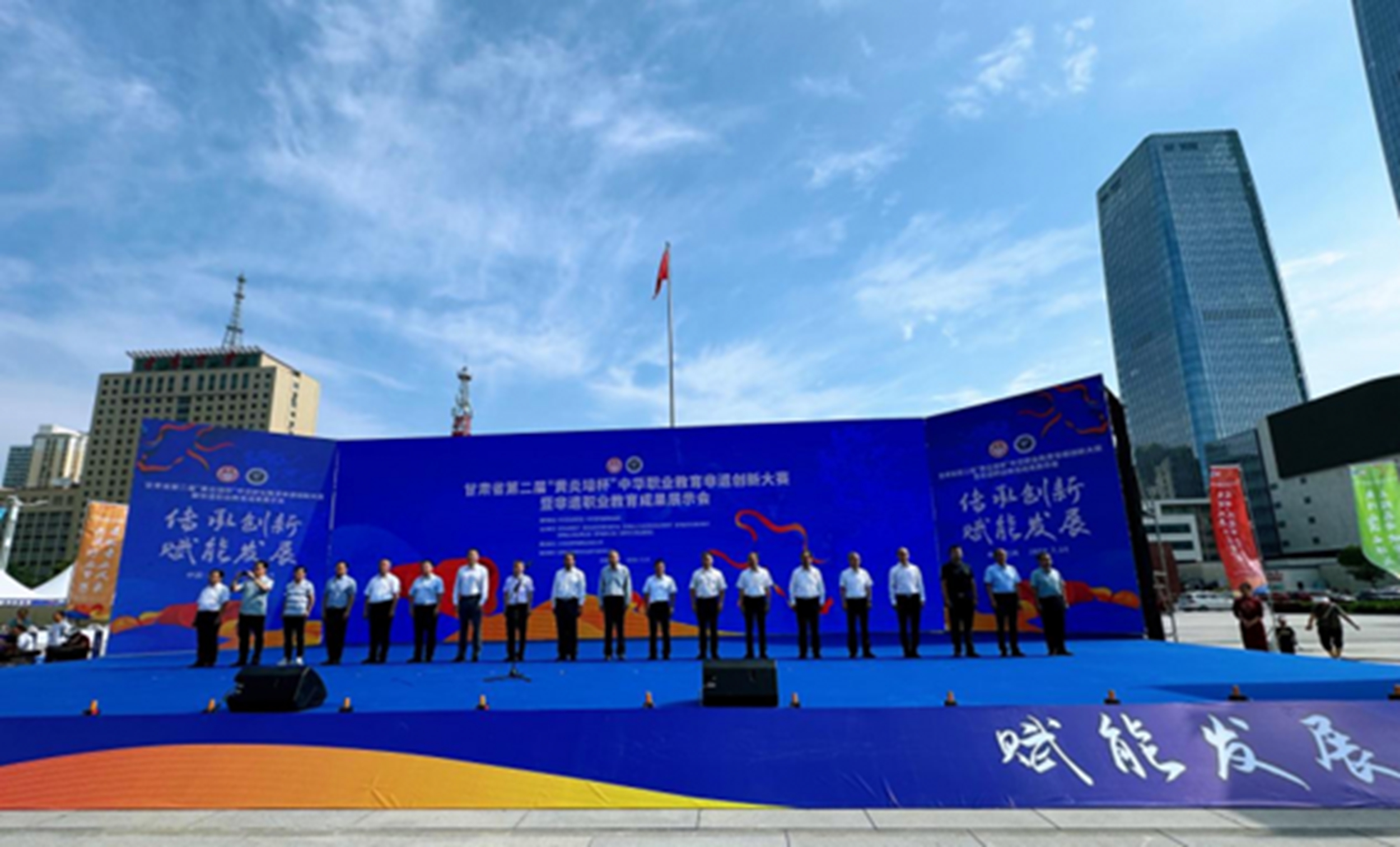 7月14日,甘肃省第二届“黄炎培杯”中华职业教育非遗创新大赛暨非遗职业教育成果展示会在兰州东方红广场举办。甘肃省人民政府副省级领导、省科学技术协会主席、甘肃中华职业教育社主任张世珍宣布赛会开幕,中华职业教育社党组书记、总干事王晓光出席开幕式并讲话。