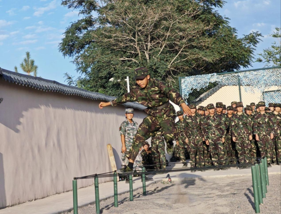 “尘土飞扬磨意志,不问路深浅坎坷”——“试”军事基本技能训练。军事训练营学员分批前往酒泉育才学校军事体验场,场内由“单杠双杠,孔洞,匍匐低桩网,板碍高墙,Z字平衡木,徒涉场,跨网”等障碍物组成跑道,教官现场演示后,学员分组体验障碍场军事基本技能训练。