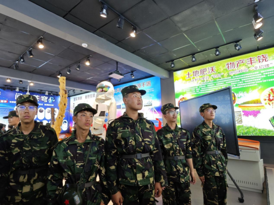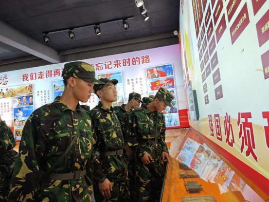 “百年党史映辉煌,军备强国展雄风”——“溯”国防陈列展室。军事训练营学员在讲解员的带领下重温中国共产党百年历程,聆听军事装备讲解、国防知识讲解,参观大型军用模型,追溯了中国共产党和人民军队的征程雄风与漫道荣光。