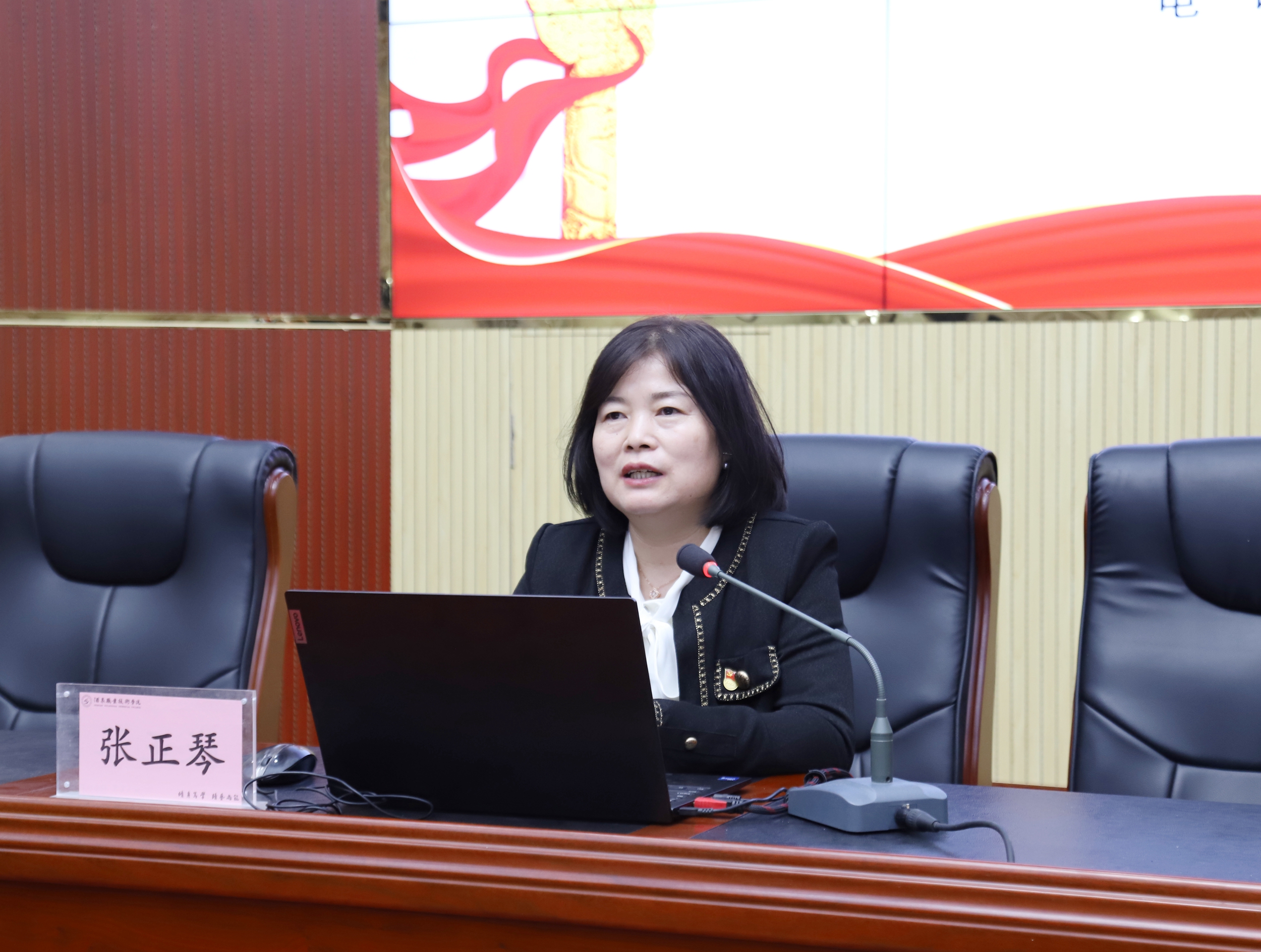 张正琴副教授主要从党的二十届三中全会基本概况及公报要点、进一步全面深化改革的重大意义和总体要求、聚焦重点全面深化改革,推进中国式现代化等三个方面对全会精神作了深入全面系统的宣讲和阐释辅导,并结合自身工作经历,对如何全力以赴抓好全会精神贯彻落实作了说明。报告主题鲜明、内容丰富、重点突出、逻辑严密,既有理论高度,又有思想深度,具有很强的指导性和针对性。