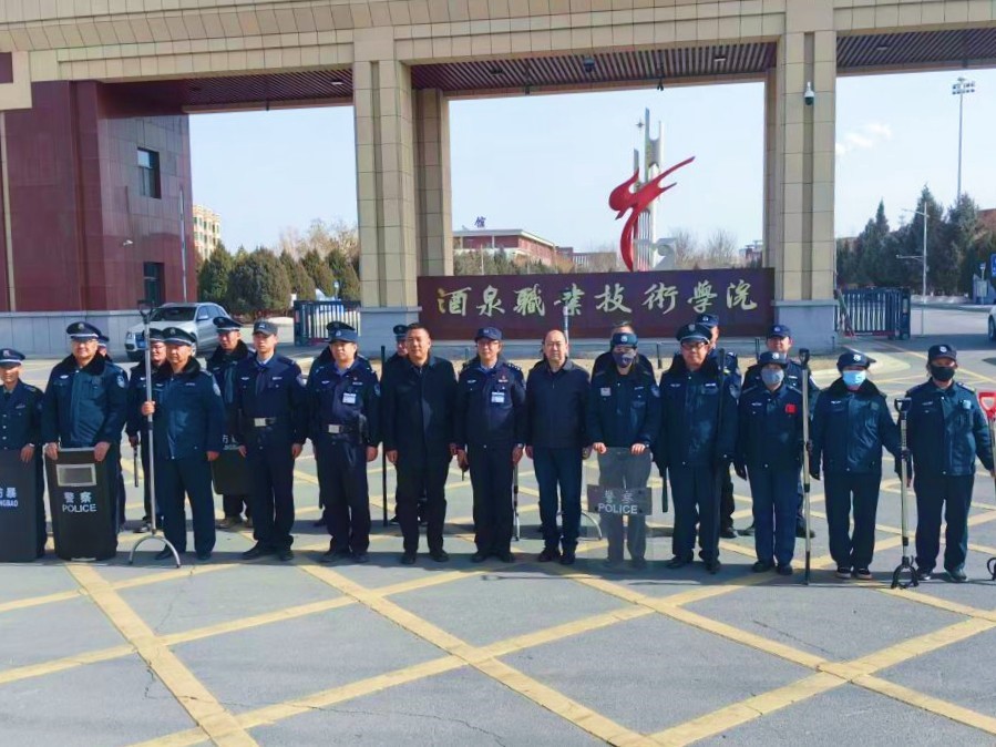 为深入推进平安校园建设工作,全面提升学校应急处置能力,全力筑牢校园安全“第一道”防线,进一步保障广大师生生命财产安全。2025年3月4日下午,学校联合属地酒泉市公安局肃州分局国保大队、火车站派出所等专业力量进校开展了2025年上半年反恐防暴应急演练。学校党委委员、副校长施荣,应急安稳处管理人员及应急安稳人员参加活动。