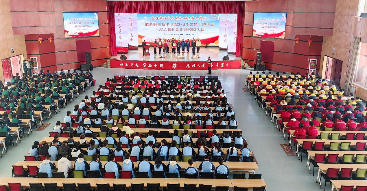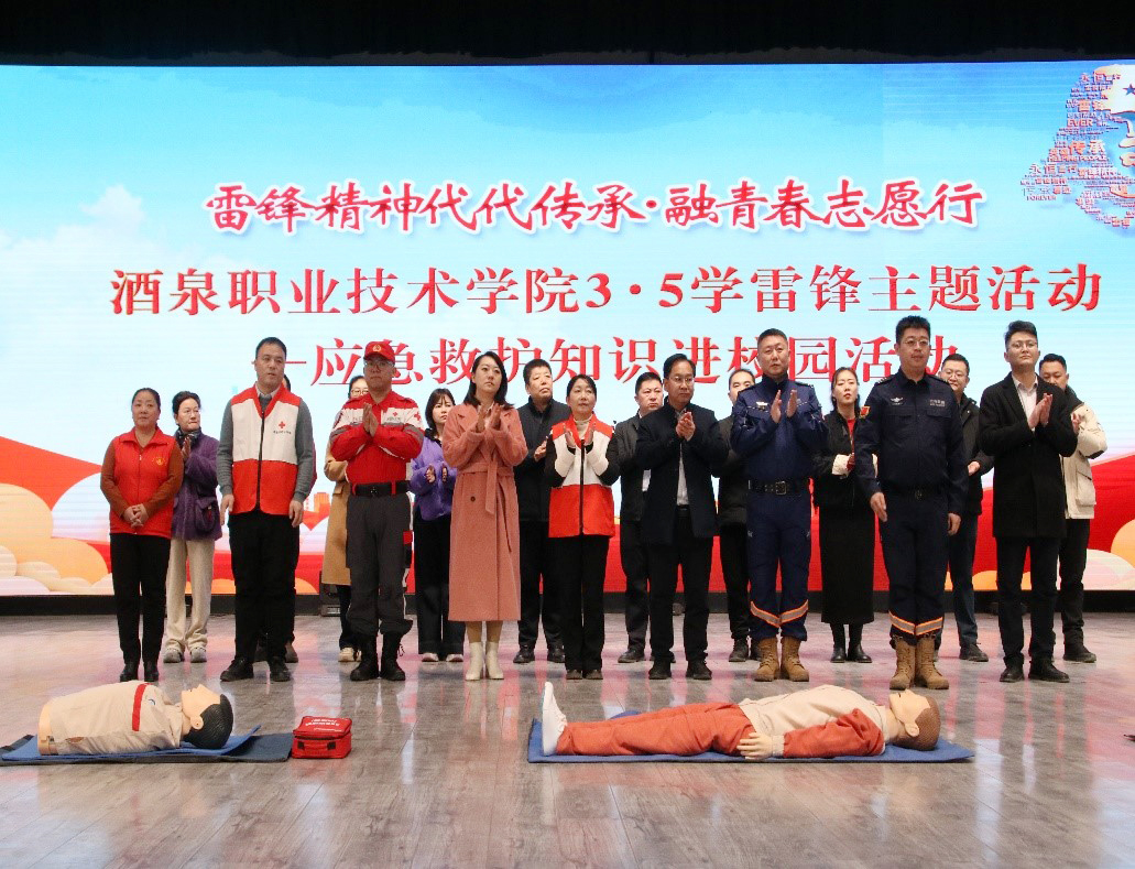要闻快递 > 正文2025年3月5日,学校联合酒泉市红十字会,在胡杨文化活动中心举办“雷锋精神代代传承 融青春志愿行“3·5学雷锋”应急救护知识进校园主题活动。酒泉市红十字会专职副会长马正华,全国模范军人、甘肃省方舟救援队队长曲波,学校党委委员、副校长施荣出席活动。学校学生工作部、团委、各二级学院分管学生工作领导,师生代表共500余人参加活动。