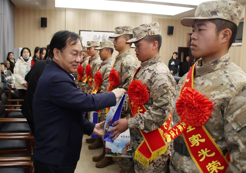 施荣在讲话中高度赞扬了入伍学子的家国情怀与使命担当,并提出三点期望,一是铸牢忠诚之魂,淬炼报国初心。要以赤子丹心铸就信仰底色,以铁血荣光践行强军誓言,做听党指挥、能打胜仗、作风优良的新时代人民卫士,用青春热血守护山河无恙、家国长安。二是砥砺担当之志,锻炼钢铁意志。要牢记“扎根大漠,荫泽苍生”的酒职精神,在军旅生涯中锻造钢筋铁骨,在逆境磨砺中厚植家国情怀,以百折不挠精神书写酒职青年担当。三是厚植奋斗之力,争当时代标兵。做好不怕困难、不畏清苦的思想准备,要有听从指挥、严格要求的强烈意识,刻苦训练、努力学习、增长才干、施展才华。他强调,学校将全力做好入伍学生的保障工作,落实优抚政策,解决后顾之忧。
