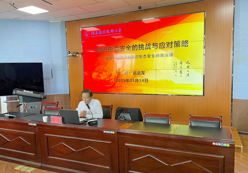 易志军教授以《意识形态安全的挑战与应对策略--数字化背景下的意识形态安全问题治理》为题,紧密围绕习近平总书记关于意识形态工作的重要论述,以近期国家层面和社会层面发生的典型案例为切入点,从意识形态的内涵和本质、我国意识形态安全面临的挑战、确保意识形态安全的应对策略等方面对意识形态安全工作进行了深入细致的讲解和阐释。