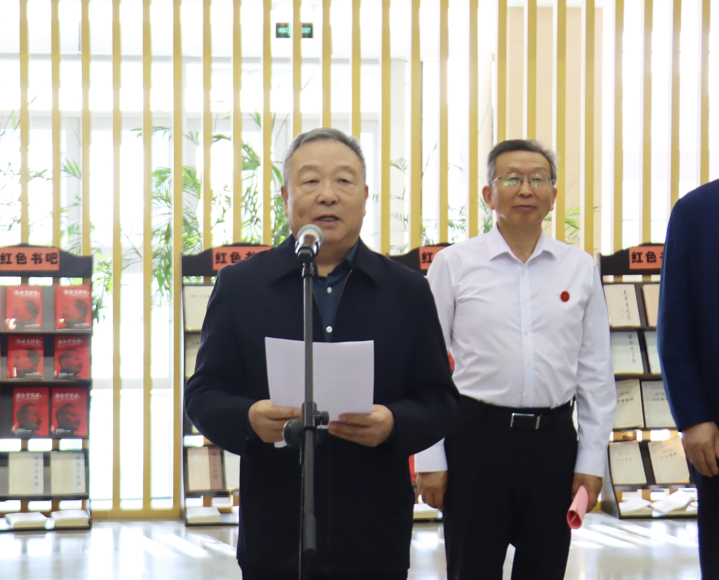 要闻快递 > 正文2025年9月8日上午,“书香传情・知行致远--甘晖先生向酒泉职业技术大学捐赠图书仪式”在学校图书馆二楼大厅举行。此次活动以图书为纽带,串联起知识传递与文化传承,更为校际交流搭建新平台。陕西师范大学原党委书记、陕西省社科联主席、陕西师范大学“一带一路”文化研究院院长甘晖,原陕西省司法厅副厅长韩旗,陕西工科教育投资发展有限公司董事长陈福泽莅临现场。学校党委书记易志军,党委副书记、校长许军,党委委员、副校长王金明,党委委员、宣传统战部部长李文有等出席活动。党委委员、副校长杨洁主持。