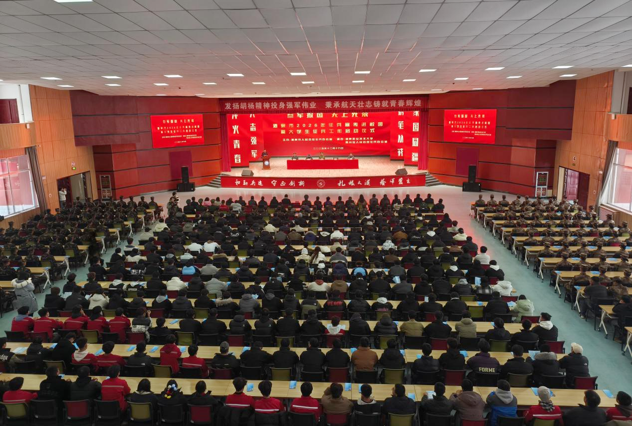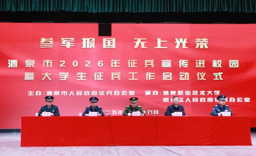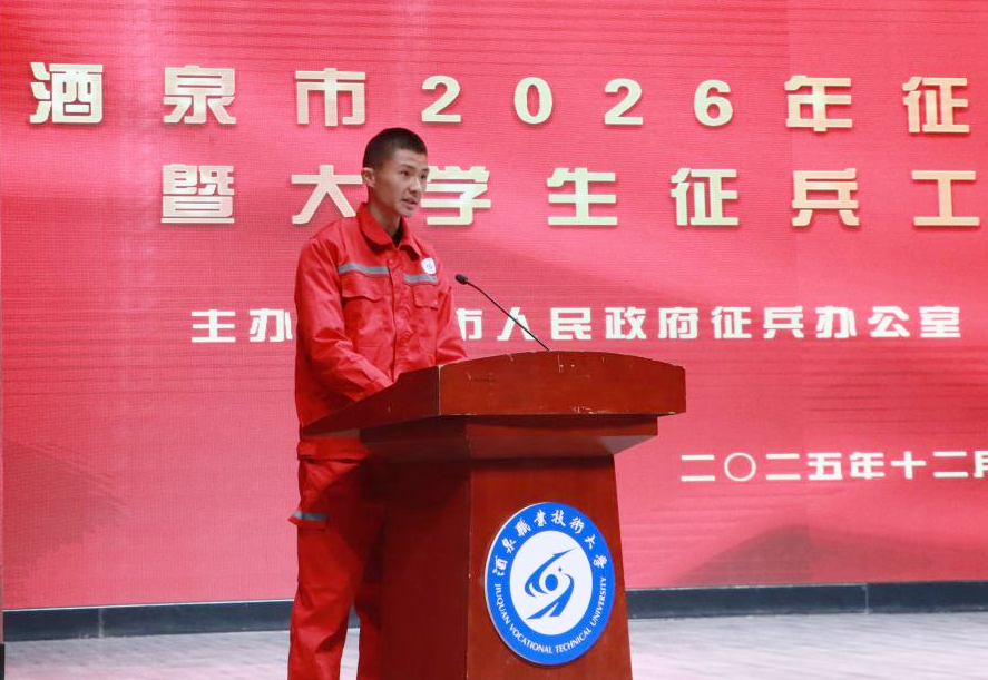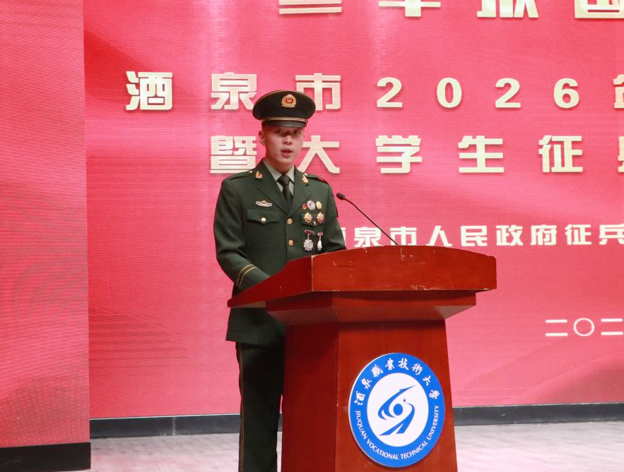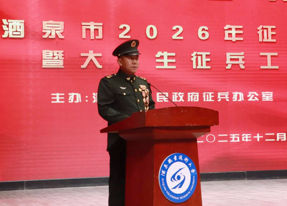 2025年12月19日下午,酒泉市2026年征兵宣传进校园暨大学生征兵工作启动仪式在酒泉职业技术大学胡杨活动中心举行。本次活动由酒泉市人民政府征兵办公室主办,酒泉职业技术大学、肃州区人民政府征兵办公室共同承办,旨在深入贯彻习近平强军思想,进一步激发广大青年学子投身国防、报效祖国的热情,为新时代国防和军队现代化建设输送高素质兵员。