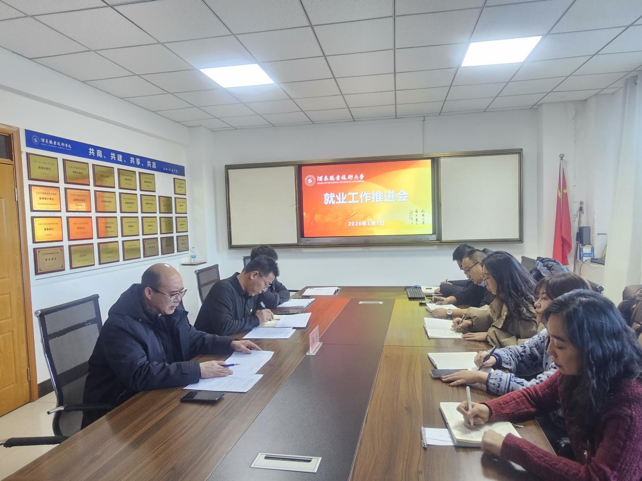 2026年1月7日上午,学校在行知楼二楼会议室召开就业工作推进会,党委委员、副校长杨洁主持会议,各二级学院、就业指导服务中心全体人员参加会议。