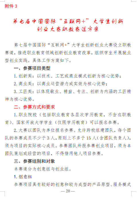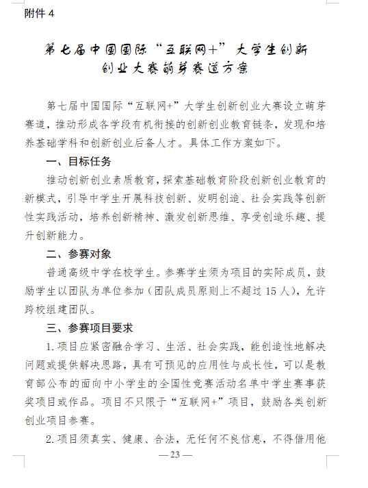 教育部关于举办第七届中国国际“互联网+” 大学生创新创业大赛的通知