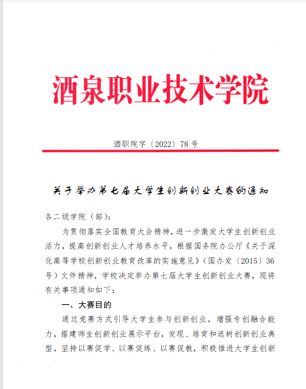 关于举办第七届大学生创新创业大赛的通知