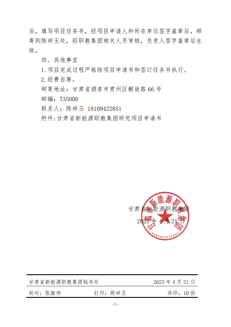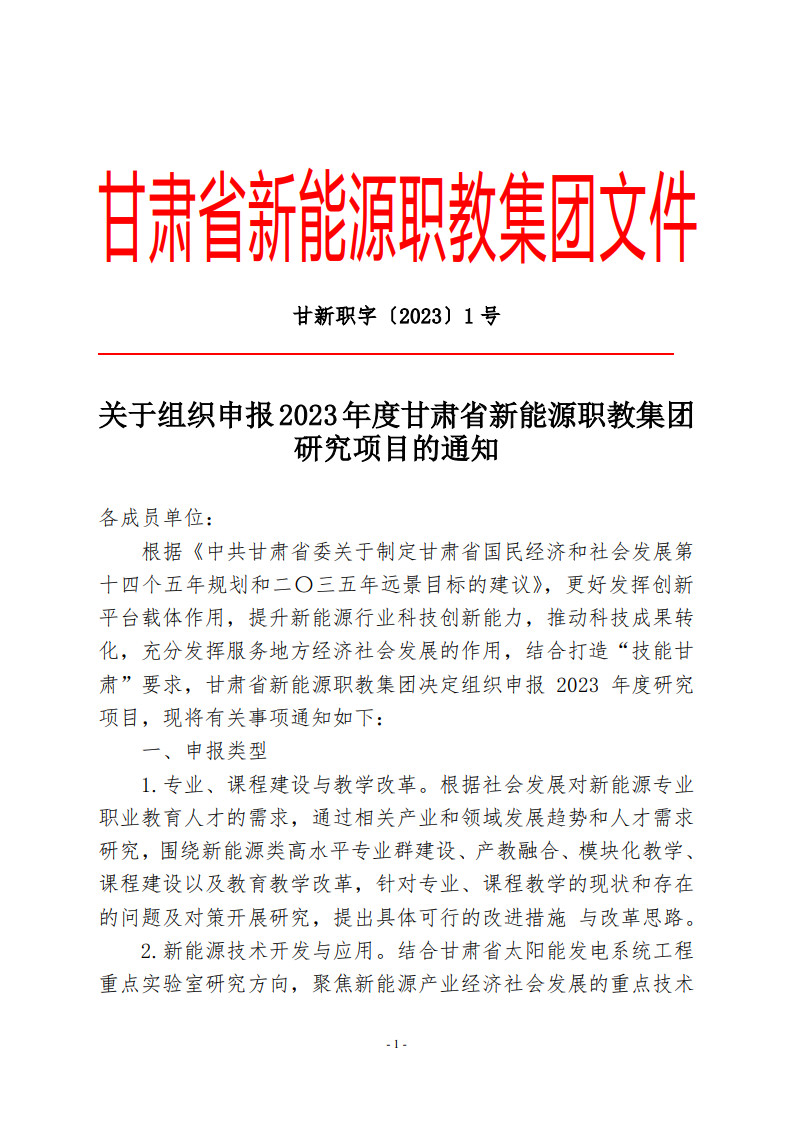 关于组织申报2023年度甘肃省新能源职教集团研究项目的通知