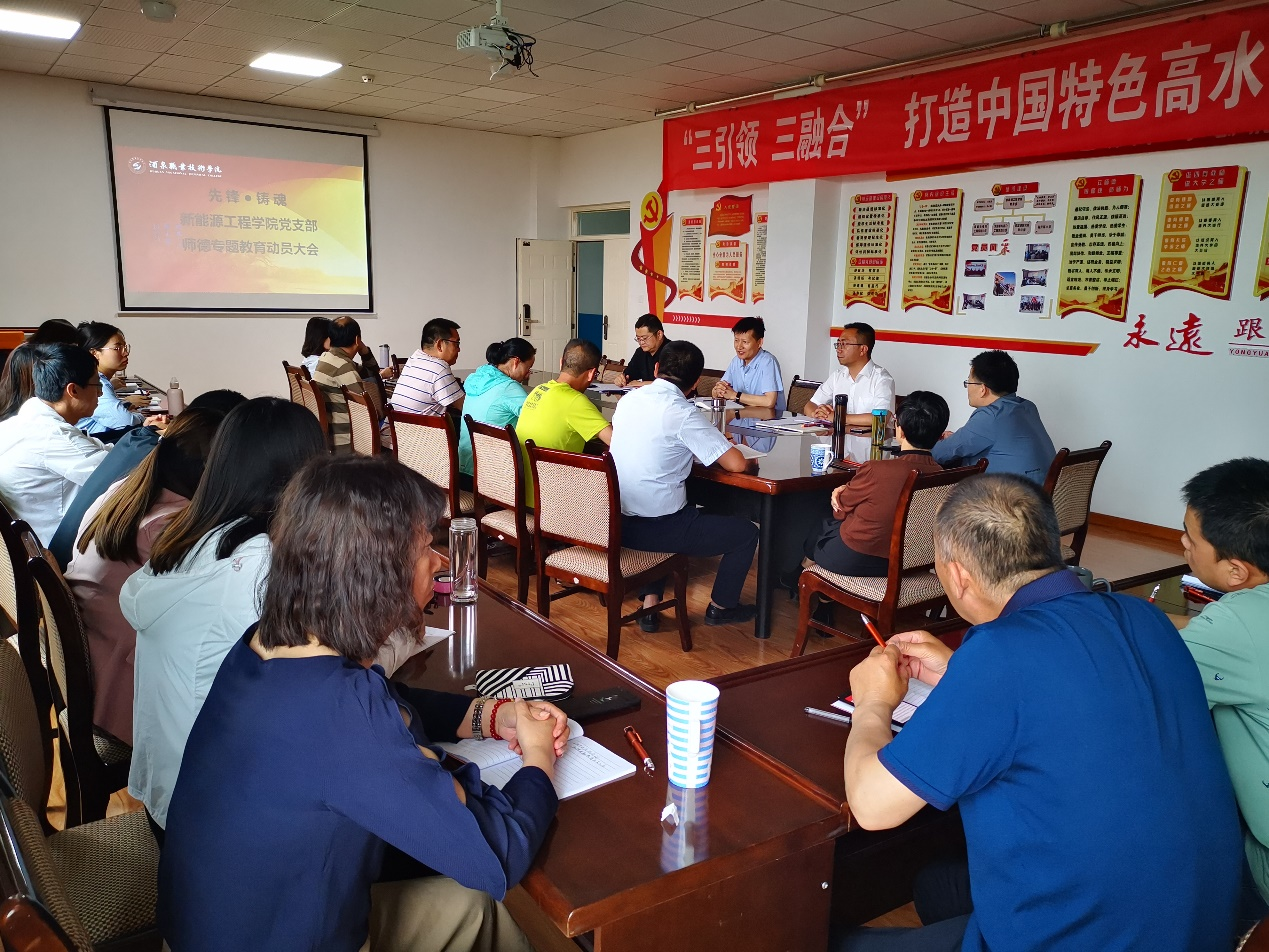 6月8日下午,新能源工程学院在致远楼319会议室召开全院师德专题教育动员大会。领导班子成员、全体教职工参加会议。