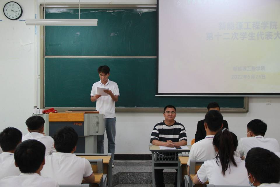 2022年5月25日,新能源工程学院第十二次学生代表大会在致远楼阶梯教室召开,学院团委书记高翔、辅导员柳国琦及2021级81名学生代表参加会议。
