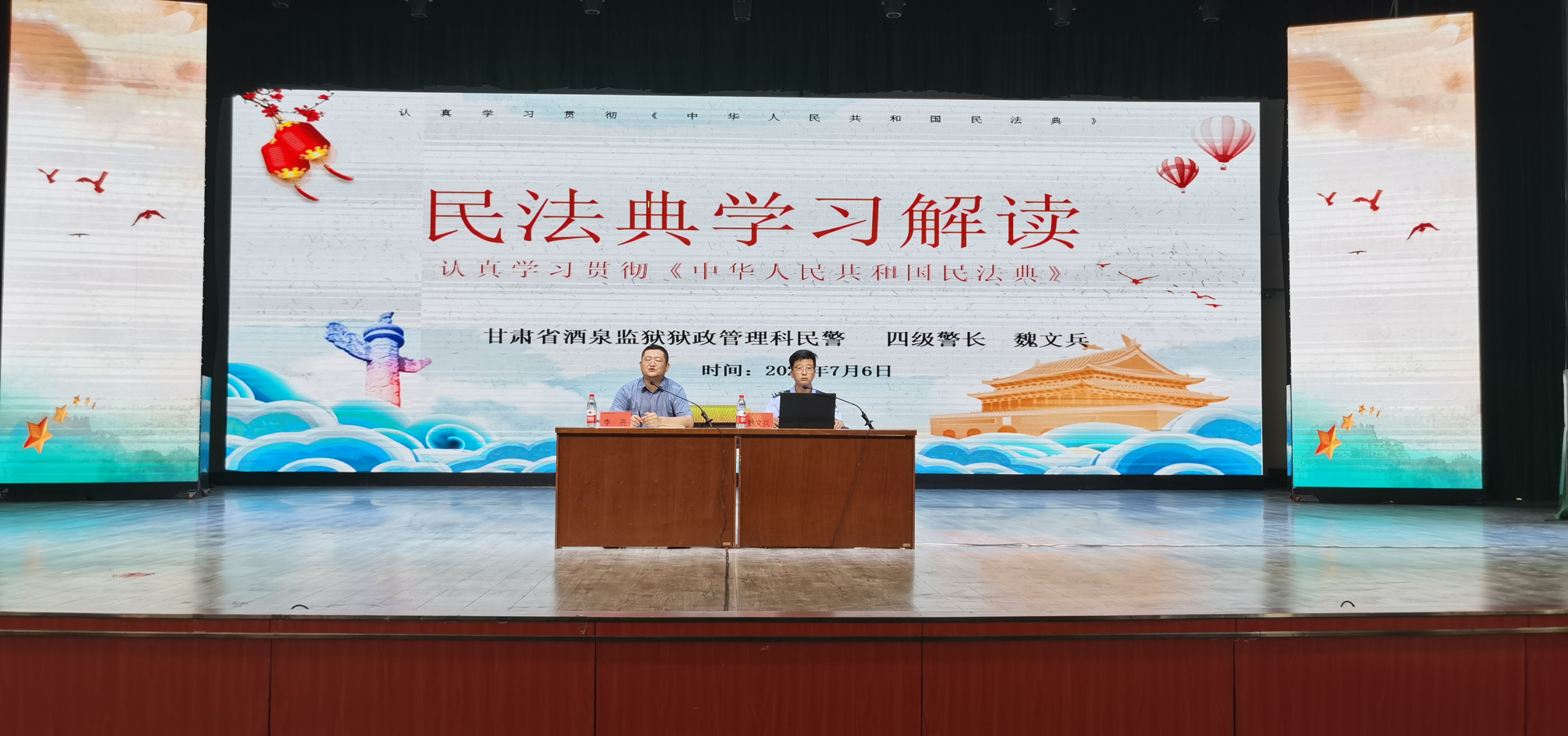 为深入开展民法典普法宣传,教育学生知法、懂法、守法,2022年7月6日下午,新能源工程学院在胡杨文化活动中心开展“民法典学习解读”法制讲座。甘肃省酒泉监狱狱政管理科民警四级警长魏文兵担任主讲人,新能源工程学院全体在校师生参加,讲座由学院党支部副书记李亮主持。