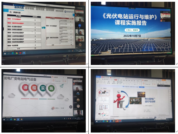 张永婷、董鋆刚、马刚和李玉霞老师分别代表《风力发电机组维护检修》、《光伏电站运行与维护》、《发电厂变电站电气设备》和《热力发电厂运行与分析》四个课程小组交流了教学实施报告。四位老师从课程整体设计、教学实施、教学效果和特色与反思等方面进行了交流分享。学院各位督导对每份实施报告进行了点评并提出了中肯建议。