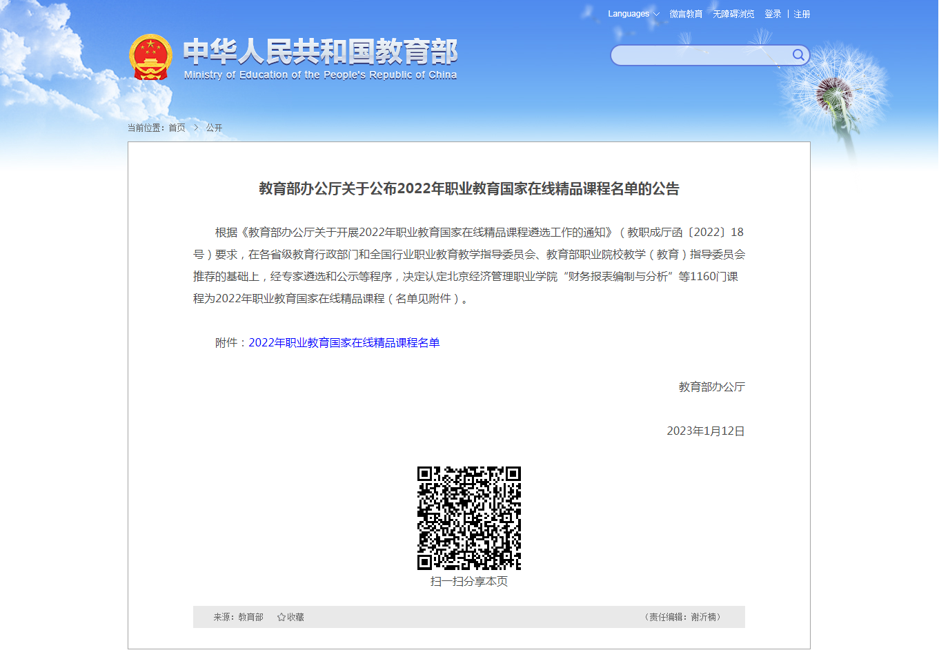 近日,教育部发布《关于开展2022年职业教育国家在线精品课程遴选工作的通知》,在各省级教育行政部门和全国行业职业教育教学指导委员会、教育部职业院校教学(教育)指导委员会推荐的基础上,经组织专家遴选,确定了1160门为2022年职业教育国家在线精品课程。我校新能源工程学院方占萍老师主持的《风力发电机组安装与调试》成功入选,是我校唯一一门入选的课程,这是我校在专业课程建设方面又一重要突破。
