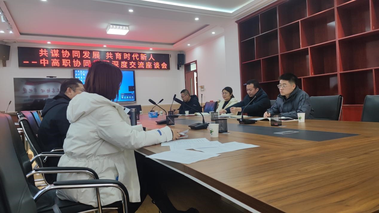 为加强中高职衔接,畅通人才成长渠道,提升职业教育适应性,全面提升高素质技术技能人才培养质量,2月27日,我校新能源工程学院副书记李亮一行3人赴敦煌艺术旅游中等专业学校开展中高职协同发展深度交流座谈会。敦煌艺术旅游中等专业学校副校长陈全生、教务办主任李文倩、副主任张锐男,敦煌首航节能新能源有限公司副总经理田卫兵,发电部经理吴伟,人事主管李红艳参加了座谈。