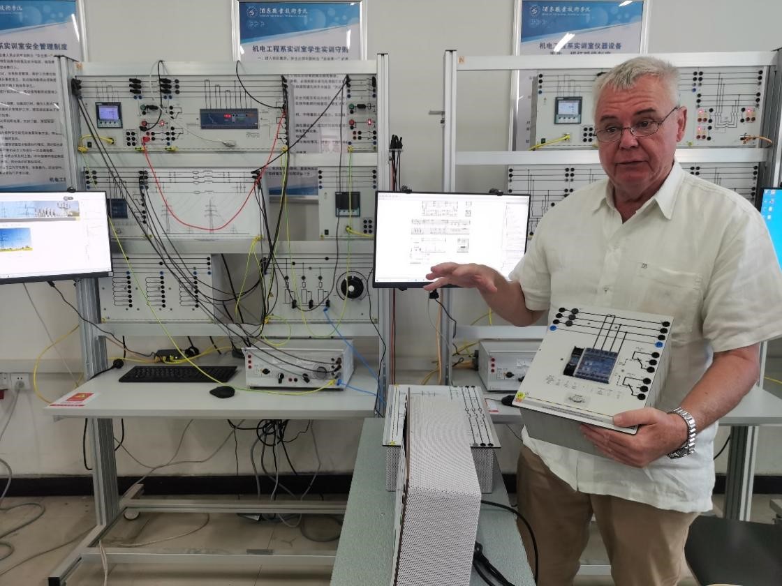来自德国LN总部的资深培训专家Ronald Hummel(罗纳尔德 胡摩尔)以及上海陆客斯教育科技有限公司技术总监聂磊博士按照德国“双元制”的实践教学理念,借助LN智能电网理实一体化实验平台,在为期五天的研修中与培训教师一起深入探讨了电机和电力电子技术、变压器及其继电保护、输电及其继电保护技术、配电及其保护技术试验平台、能源管理以及智能电网综合控制技术。