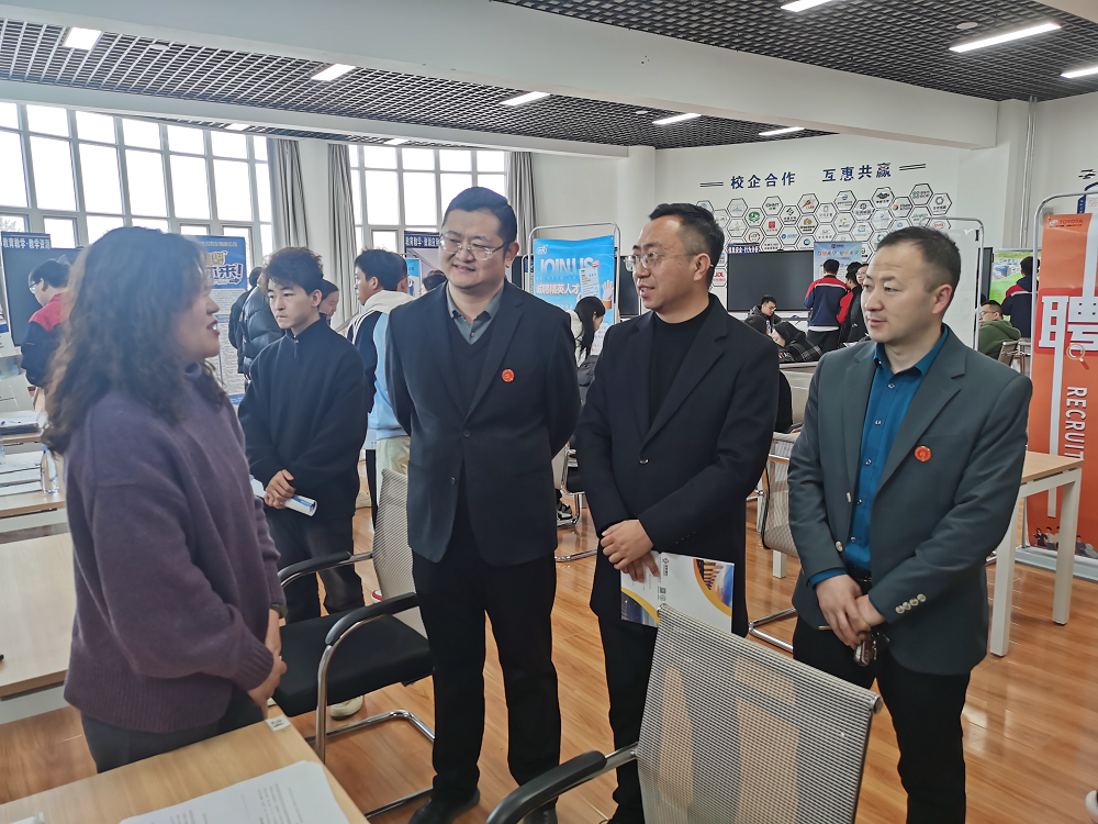 学院领导班子赴招聘现场与企业进行深入的沟通交流,了解了企业发展、生产岗位、人才需求、生产工艺、薪资待遇等情况,并向应聘学生做了现场的指导和岗位推荐。