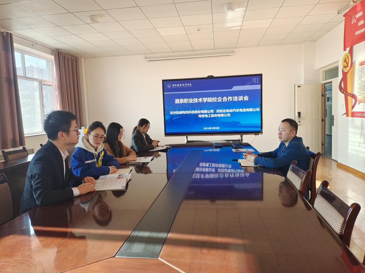 2024年3月7日至9日,肃北博伦矿业开发有限责任公司、杭州热威电热科技有限公司、重庆海辰储能科技有限公司、珠海冠宇电池股份有限公司、欣旺达电动汽车电池有限公司、特变电工股份有限公司天池能源公司、敦煌首航节能新能源有限公司、酒泉东方恒创新能源有限公司、电建甘肃能源公司海外事业部等企业代表先后来访我院进行校园招聘宣讲,并开展校企合作座谈交流。