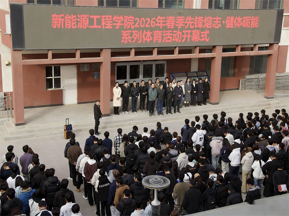 2026年3月18日下午,新能源工程学院2026年春季“先锋熔志・健体砺能”系列体育活动开幕式在致远楼前小广场顺利举行。学院领导班子、班主任代表及 1000 余名学生共同参与,开启学院春季体育盛宴。